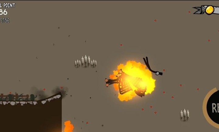 2、不同的姿势在滑落过程中会产生不同的物理效果,有的姿势能让火柴人滑得更远;
