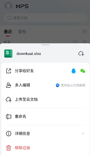 5、保存后可在首页进行查看表格,可进行分享、多人编辑、上传云文档等功能选项。