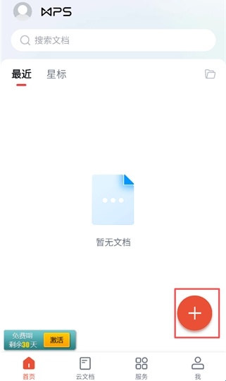 1、打开WPS Office Pro App,【+号】新建文档。