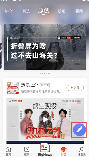 1、打开新浪新闻App,点击底部发现,进入发现页面。