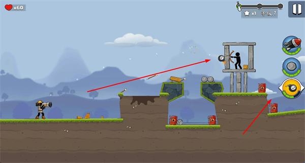 3、在关卡里操控火柴人,利用武器瞄准敌方目标,同时结合场景中的爆炸物来提高破坏效率,从而快速完成关卡。