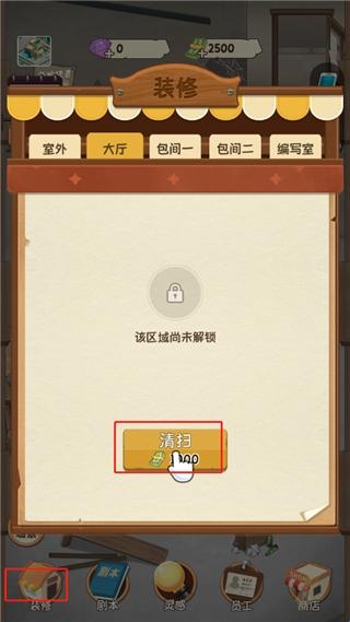 7、我们可以看到店面已经干净了,然后向你的合伙人租借剧本,每个剧本都有租借费,反甲需要好好经营;