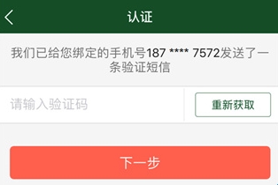 3、输入验证码后,点击下一步完成认证;