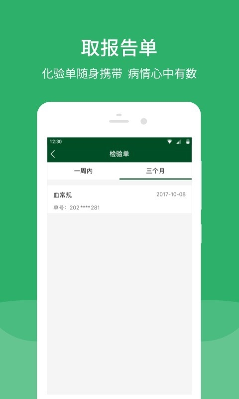 7.取报告单:用户可以提前通过APP获取化验结果报告单,提高了解诊断结果的速度。