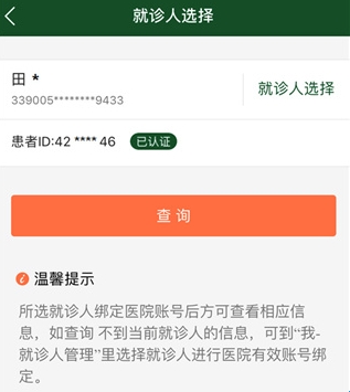 2、点击【就诊人选择】,选择要查询的就诊人;