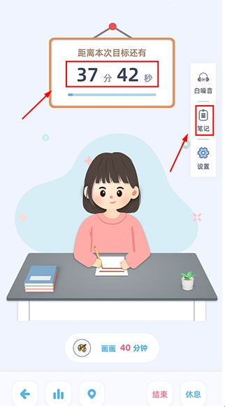 5、之后就会进入学习倒计时,学习完成后,还可对这次的学习进行总结。