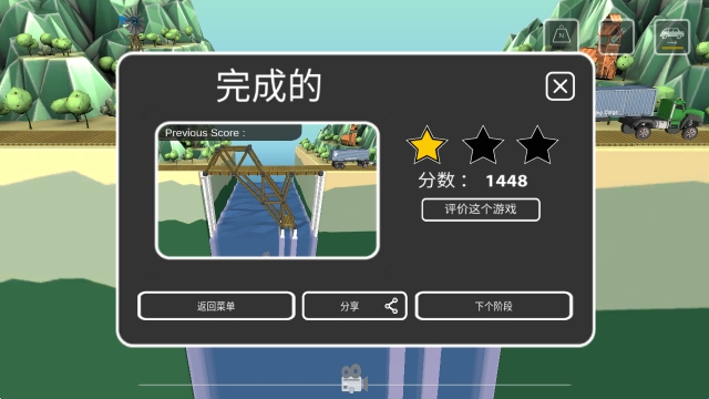 2、游戏细致的刻画出周围的环境,搭配上好听的音乐,让你可以在舒适的氛围中设计出一座座完美的桥梁。