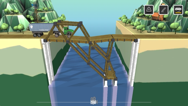 3、游戏还可以在2D与3D视角之间切换,建造桥梁时使用2D视角便于设计,测试的时候切换3D视角获得更真实的体验。