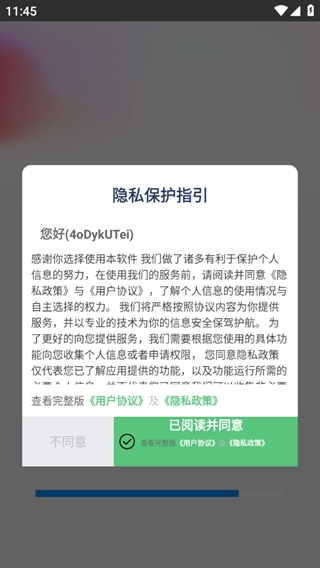 1、阅读用户协议和隐私政策之后点击已阅读并同意;