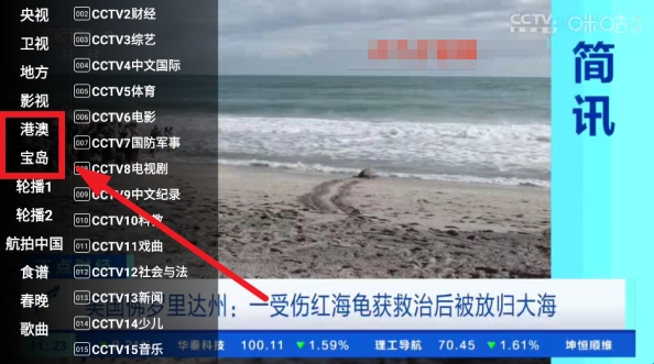 2、这里就是港澳台频道分区;