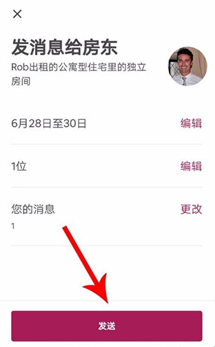 5、完成设置后,点击页面底部的“发送”,便可向房东发送消息;