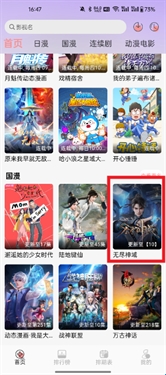1、安装完成后进入软件,软件首页虽然显示的是影视资源,可以将上方的板块滑动选择到动漫板块。