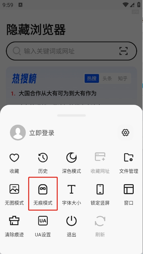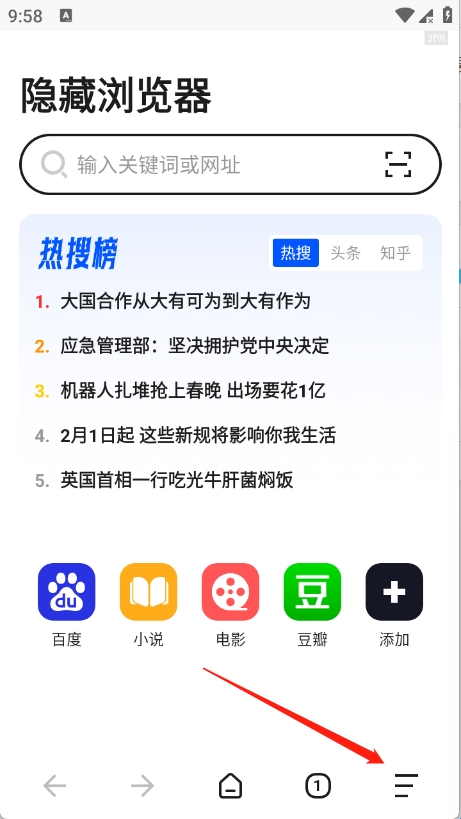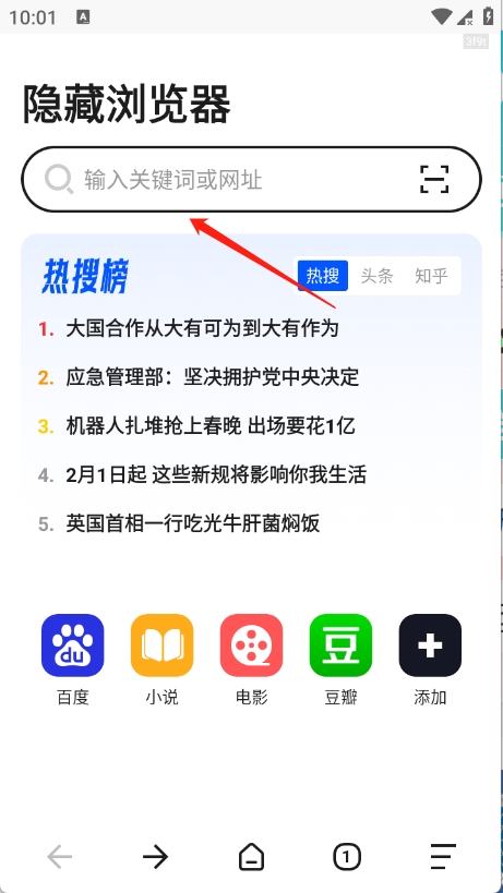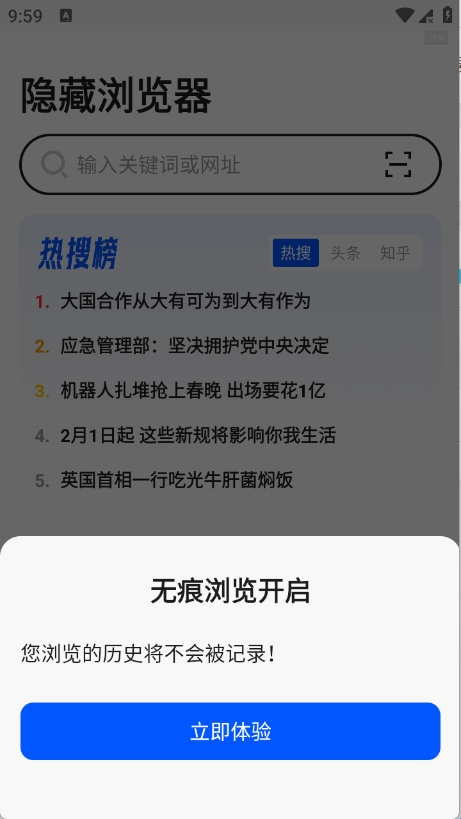 隐藏浏览器是一款简洁纯净的浏览器app。软件主打清爽极简的使用手感,用户在首页种能够看到当日的热搜头条,并且还可以添加常用的功能和网址,收藏、无痕模式、字体大小等诸多设置可供调节,满足每位用户的使用需求。此外网页的加载速度非常快,感兴趣的小伙伴们赶紧下载吧。
