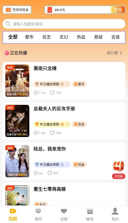 1、【海量短剧】覆盖多种题材,无付费,看剧还能攒收益,打造“追剧+福利”体验!