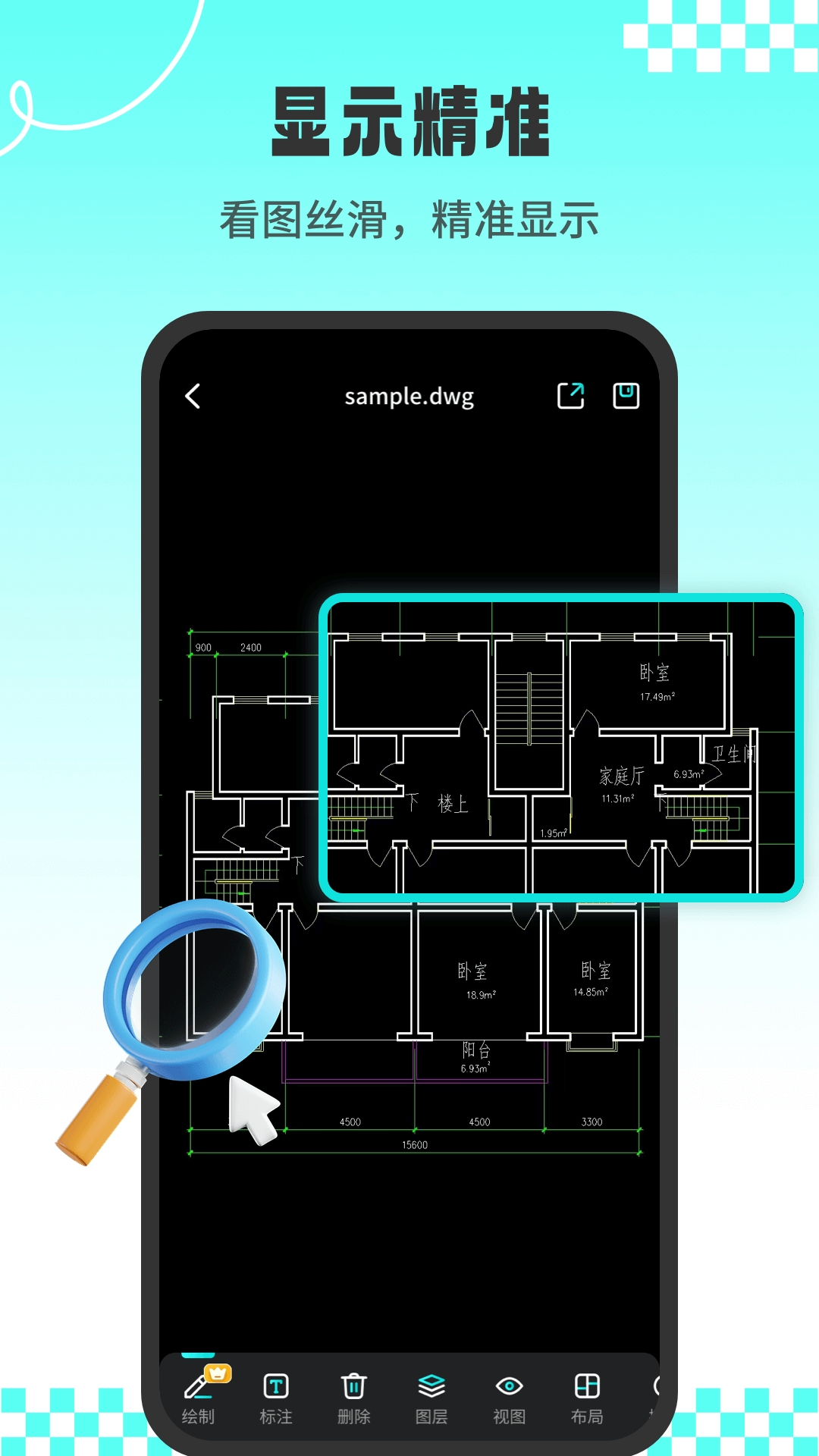 CAD专业看图师,一款功能多样的CAD看图软件。软件内置丰富的工具,用户可以使用这款软件完成图纸测量,精准测距测面积,还能使用工具栏对图面绘制编辑。软件内置多种格式,涵盖餐桌素材、室内设计图纸、床素材等,用户可以使用软件快速导入,还能将设计好的图纸一键分享。
