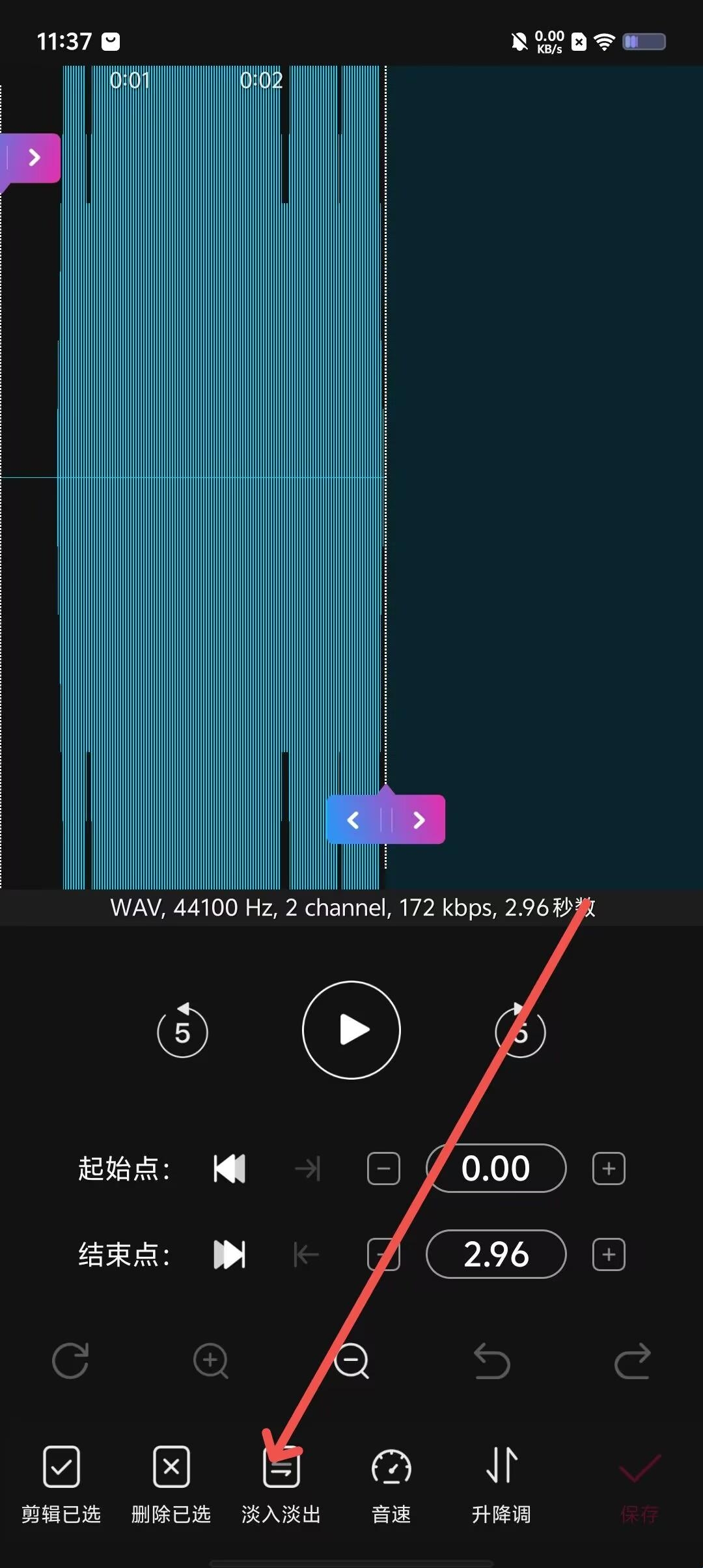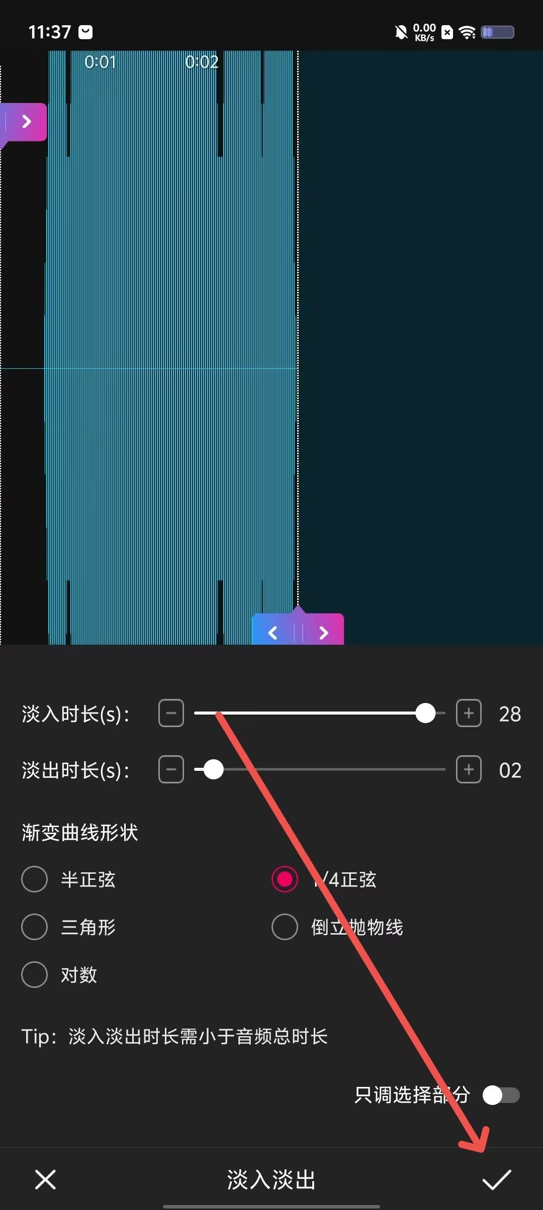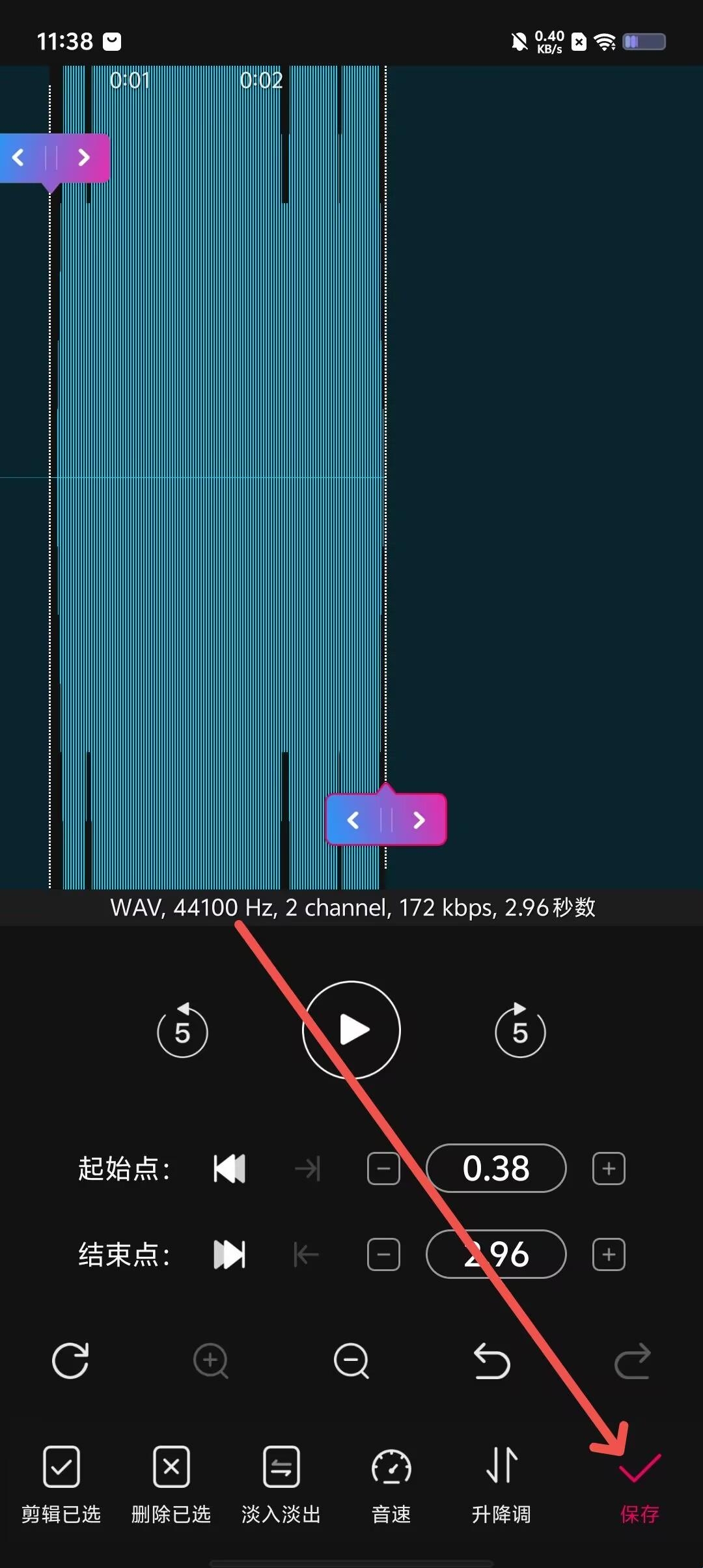 第四步,依据偏好,剪辑音频,点击右下角保存。