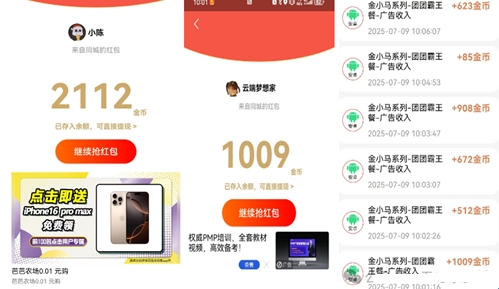 2、看广模块、这个模块细分的就多了主要分为视频看广、红包qun看广。