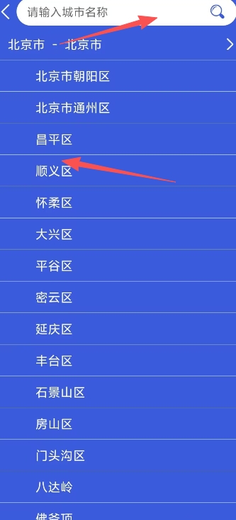 2、在城市列表界面点击添加城市输入城市名称即可成功切换。