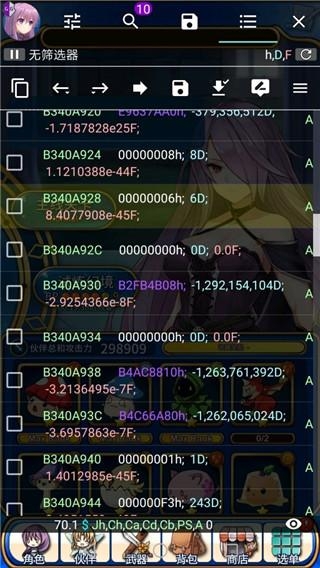 通常是e类,比如技能伤害是180%,那么我们转化成小数,就是1.8,直接搜索1.8然后修改,有的数值是需要把这个转化的小数*10倍或者100倍甚至10000倍才能搜索到,所以都可以试一下