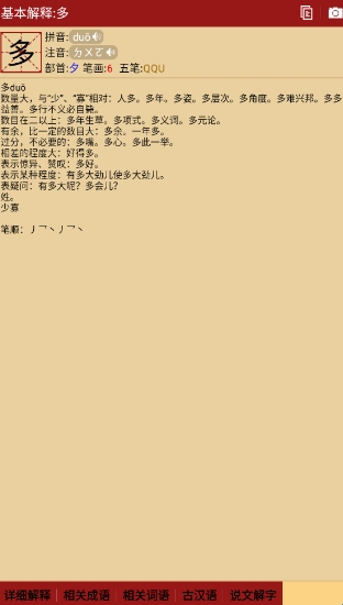 2、长按解释内容可以反查解释中的生字