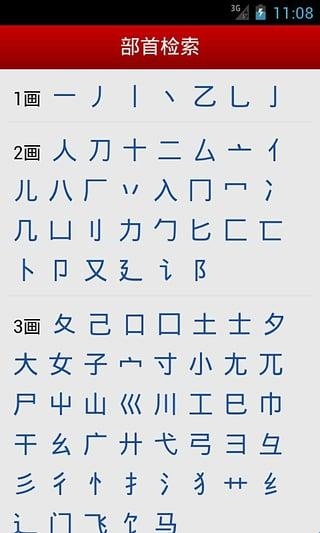 6、拼音、部首、笔画查询的笔画部首分类点击可快速跳转