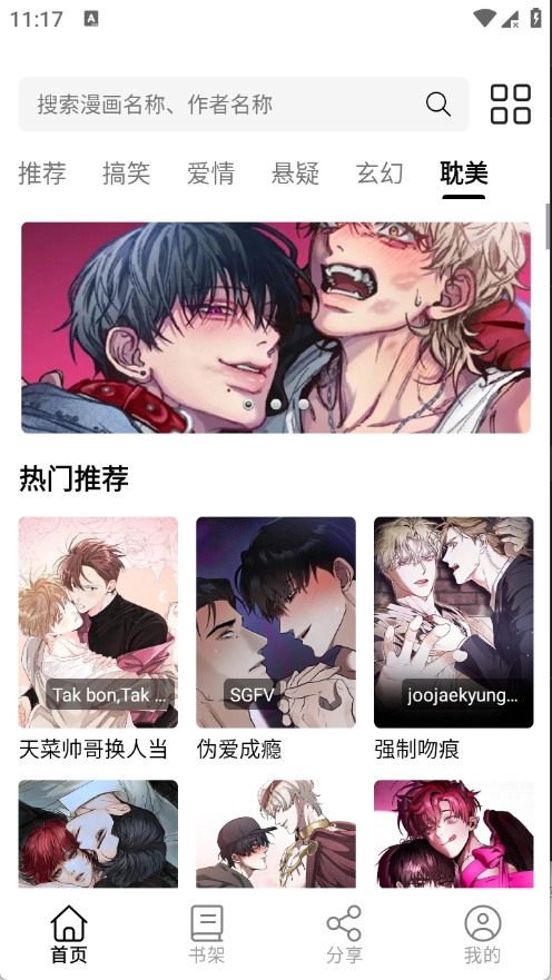 2、来到首页为用户推荐了当前热门的漫画资源。