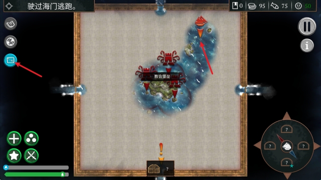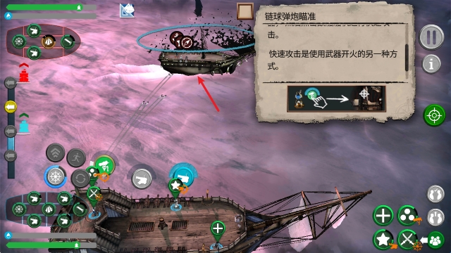 5、靠近敌船后,点击左侧的箭头就能够撞击敌船。