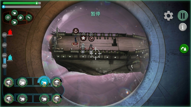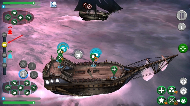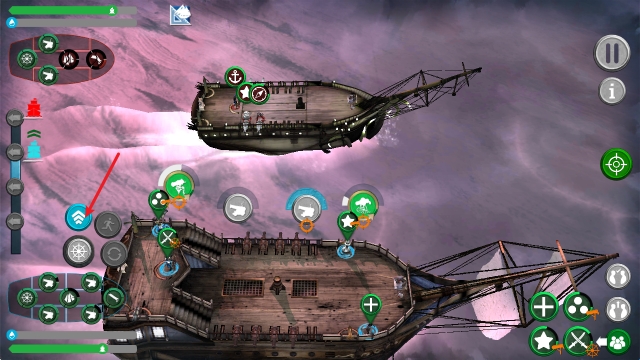 4、点击左侧的按钮即可让我们能够靠近敌船。