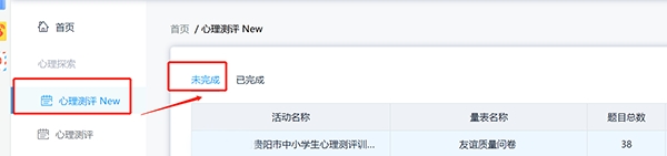 登录完成后,点击“心理测评NEW”完成相应测评