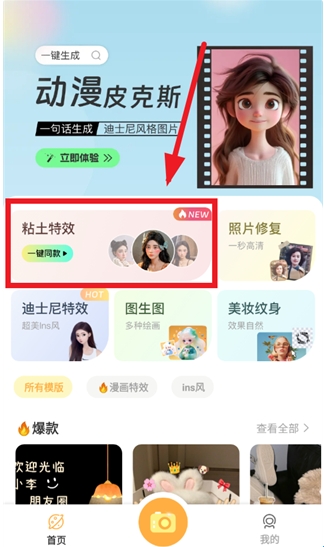 1、打开美颜自拍P图app,进入后选择粘土特效;