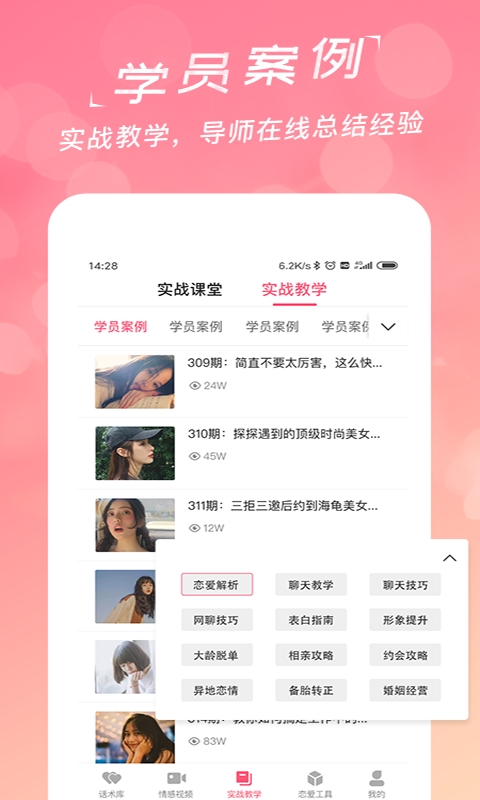 海量不同场景见面搭讪聊天话术拈手即来恋爱技巧,泡妞大法,教你如何谈恋爱,为您的恋爱情感保驾护航。