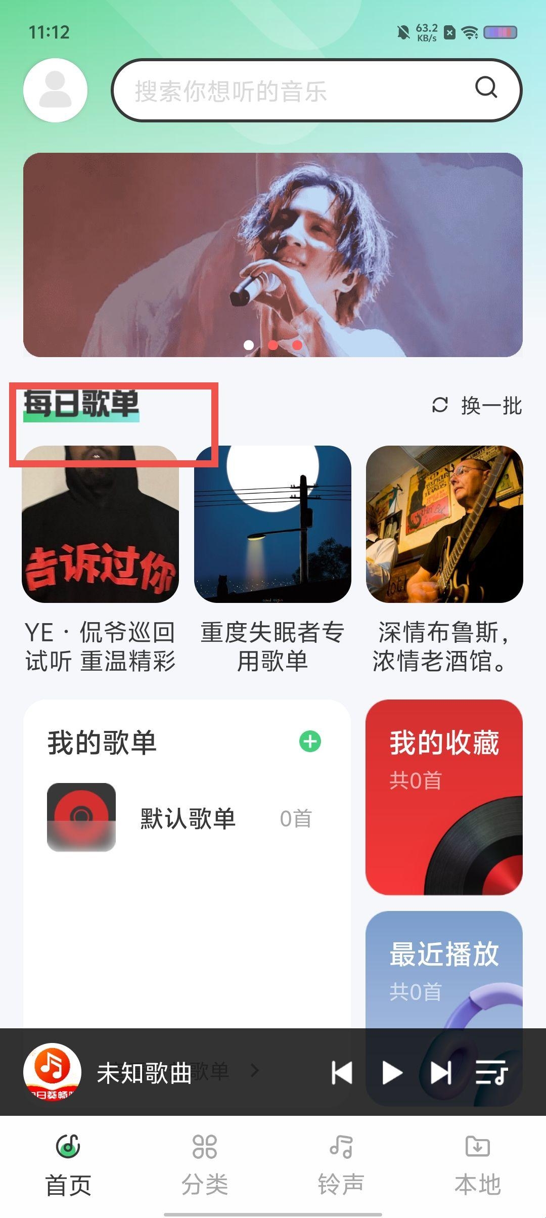 第一步,点击进入每日歌单专区。