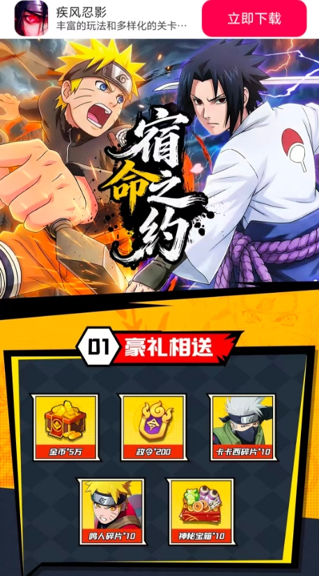2、上线送强力角色:新玩家上线即可获得强力角色,快速融入游戏,体验忍者世界的精彩冒险。