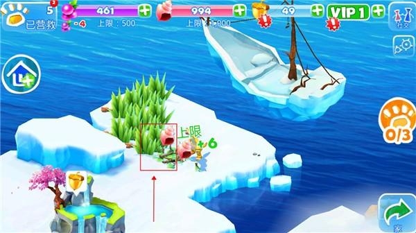 5、营救动物需要进行挑战,我们需要将相同的三个物体放置在一起进行消除,将图中的红心弄到最下方即可成功拯救动物。