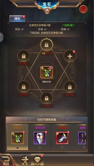 1、宝石镶嵌:得到宝石之后,可以将宝石镶嵌到有镶嵌孔的装备上。镶嵌之后,宝石的属性可以叠加到装备的属性之上。