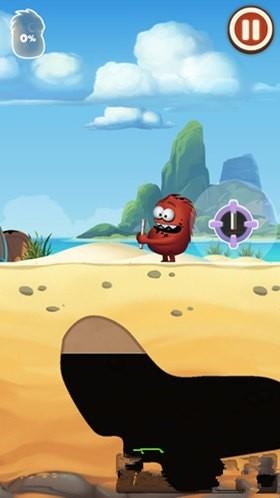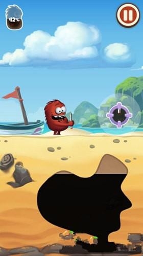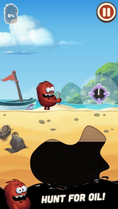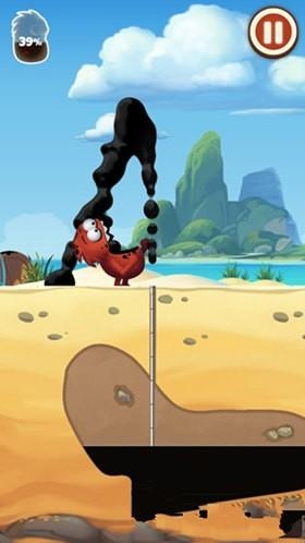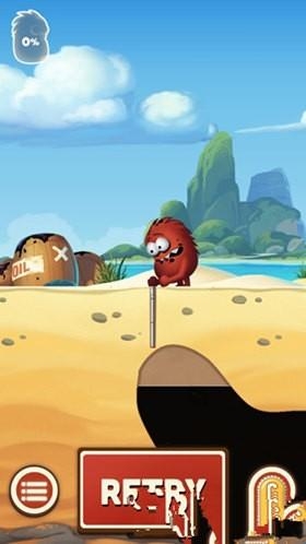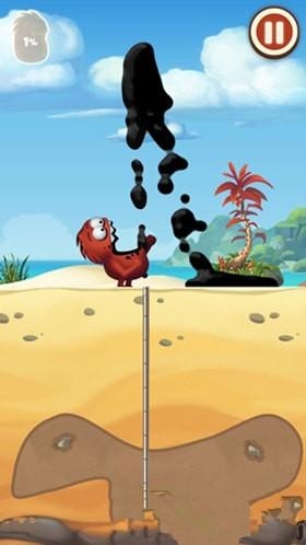 1、采油小怪2游戏中小怪物出来的时候,手里会拿着一个可以伸缩的导管,有些像孙悟空的如意金箍棒一样,我们来到有石油的上方,按住屏幕中出现的按钮,就可以让导管边长。