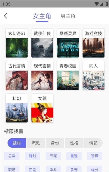 3、在分类页面,可以根据小说的不同分类来筛选想看的类型