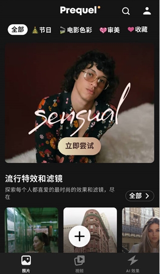 1、打开Prequel相机,进入「照片」模块点击「尝试」。