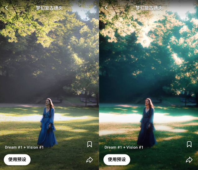 2、用 Cinema, Disco, Grain, Miami, Lomo, Film, Vintage, VHS, Glitch, Spectra, Retro等多个预置预设,给照片和视频带来摩登、复古或未来主义的风格;
