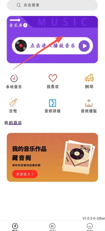 1、在软件首页点击音乐库进行后续操作。