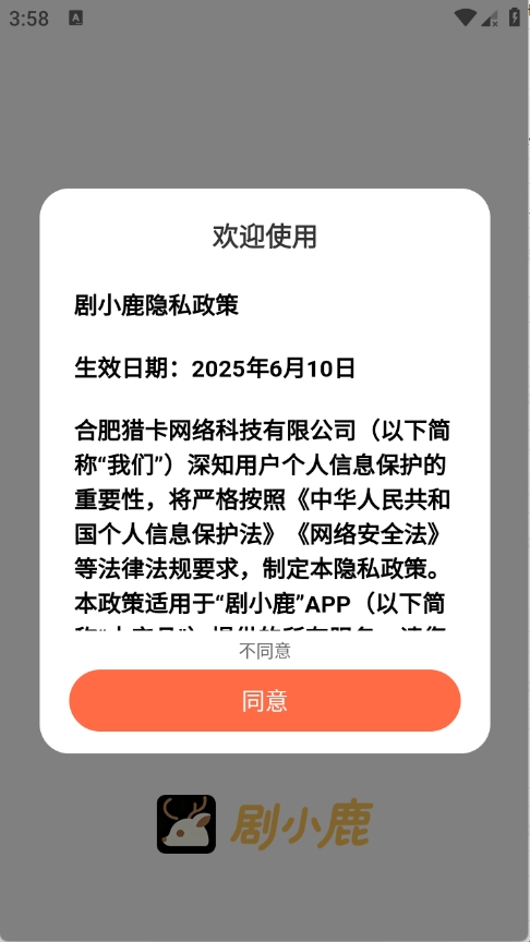 1、用户在游娱下载剧小鹿app,点击同意。