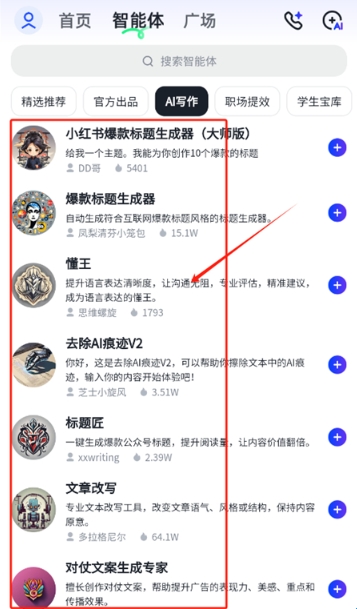 3、在智能体页面,还为大家提供了不同领域的智能AI助手;