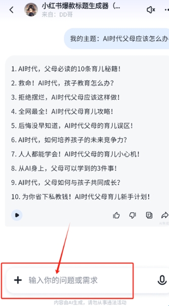4、点击进入后输入你的问题和需求即可获取回答;