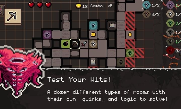 1、程序生成的随机地图保证了极高的耐玩度。每一次进入地牢,房间的布局、机关的分布都是全新的,绝不会有重复的枯燥感。