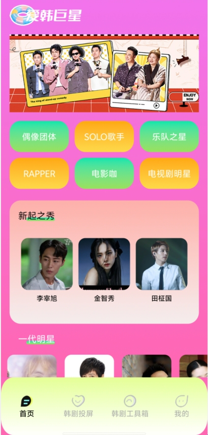 小韩圈投屏版是哦一款非常好用的韩剧投屏播放类软件,这款软件内包含了多种韩流明星的百科内容,还有各种热门韩剧资源和韩文歌曲,满足用户不同的使用需求。不仅如此,软件还设置了影视投屏功能,让用户可以享受大屏观看韩剧的乐趣,带给用户更好的视觉享受,喜欢的朋友们快来下载吧。