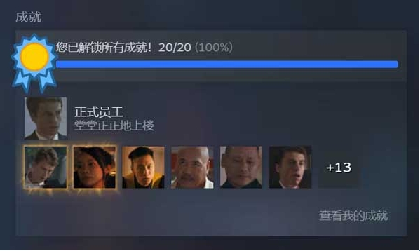 5、正式员工(堂堂正正地上楼)这个是能第四快得到的成就,在拍卖会出完价后,梅玲送你进电梯时选择。需要注意的是,这个成就与下面的蓄意破坏成就是相反的对话选择。