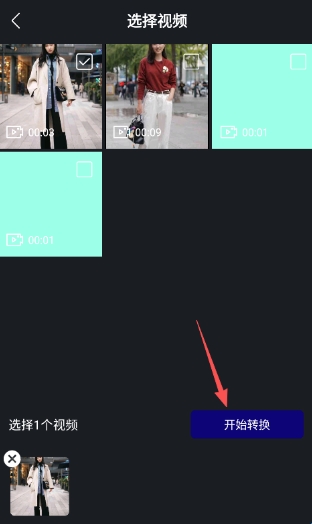 3、随后选择需要转换的视频,点击屏幕右下方的“开始转换”。