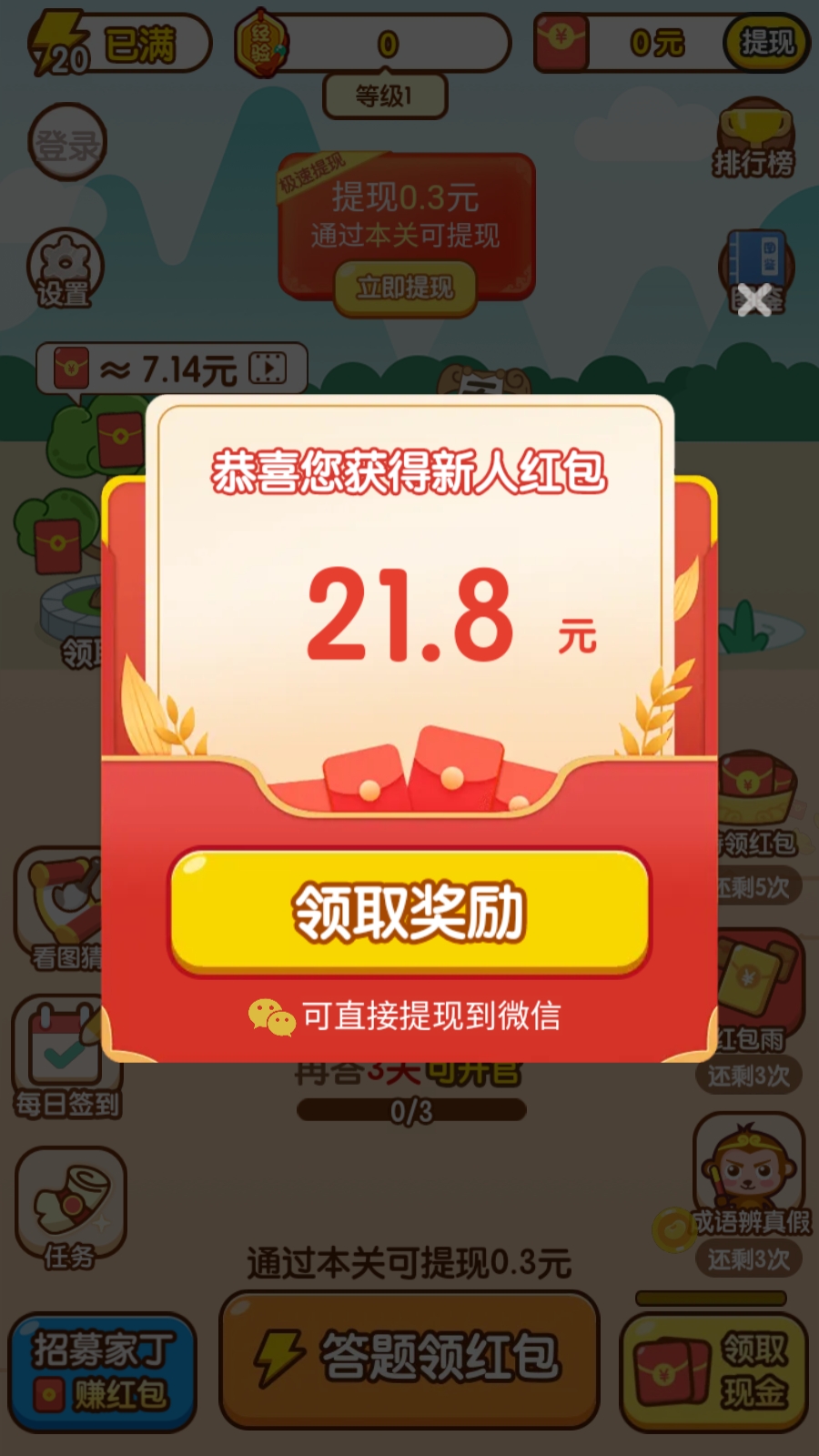 掌上秀才成语是一款既可以学习又能赚钱的小游戏,游戏内涵盖了大量的成语学习任务,你需要通过答题不断升官,并获得相应的奖励。此外,每通关一次就能提现0.3元,趣味无限。而且你还可以通过看视频获得红包,非常不错!游戏整体玩法简单,还能积累成语,有兴趣的玩家快来玩吧!