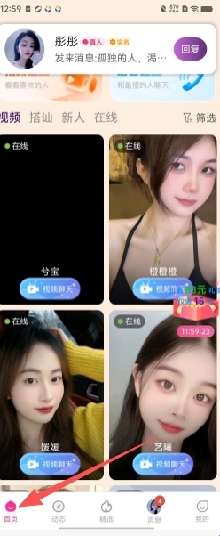 第一步:在首页区域展示了丰富的推荐好友可以点击私聊。