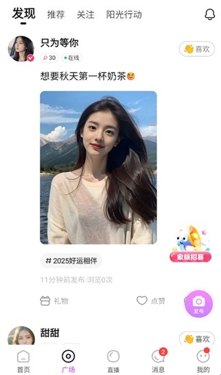 4、不知道和谁聊天的用户可以在广场上转转,看看其他网友分享的生活。